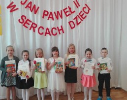 W dniu 16 maja w naszej szkole odbył się Konkurs Recytatorski ,,Jan Paweł II w sercach dzieci”. Jednym z założeń tej uroczystości, było oprócz popularyzacji poezji i rozwoju umiejętności recytatorskich, upamiętnienie i uczczenie 97 rocznicy urodzin papieża Polaka. Do konkursu zgłosiło się 20 uczniów klas I-III Szkoły Podstawowej.