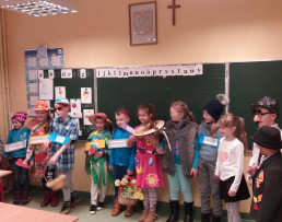 W czwartek i piątek uczniowie klasy II SP podzielili się swoją wiedzą o dwunastu miesiącach z uczniami klasy I i II SP, przedstawiając im inscenizację „Proszę państwa, oto Rok”. Każde z dzieci bardzo wczuło się w swoją rolę. Takie przedstawienia integrują młodych wykonawców i urozmaicają dzień powszedni w szkole. Zajęcia tego typu pozwalają także w obrazowy sposób utrwalać nazwy miesięcy, pór roku oraz wymieniać ich charakterystyczne cechy.