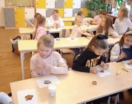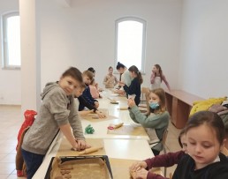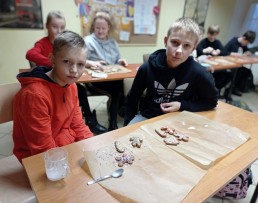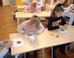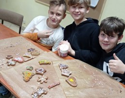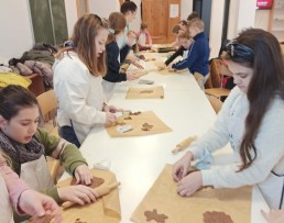 W grudniu na zajęciach z języka kaszubskiego nie było nudy. Uczniowie zapoznali się z tradycją pieczenia pierników na Kaszubach. Przygotowanie wypieków sprawiło uczniom wiele radości. Dzieci wygniatały i wałkowały ciasto wg przygotowanych wcześniej przepisów z wielkim zaangażowaniem. Powstało wiele świątecznych kształtów- choinek, gwiazdek, aniołków i innych przy pomocy foremek. Po upieczeniu pierniczki zostały pięknie ozdobione. Po szkole zaczął unosić się wspaniały zapach pieczonych pierniczków, który wprawił wszystkich w świąteczny nastrój.