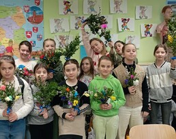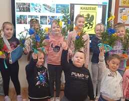 Przed Niedzielą Palmową na zajęciach języka kaszubskiego uczniowie klas I-IV przygotowali swoje palmy wielkanocne z bazi, bukszpanu i kwiatów z bibuły- wykonanych własnoręcznie. Na niektórych pojawiły się kwiaty w barwach niebiesko- żółtych. Uczniom sprawiło to dużo przyjemności, wszyscy skrupulatnie układali swoje niepowtarzalne kompozycje aby w niedzielę udać się z nimi do kościoła i je poświęcić.