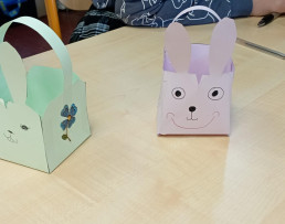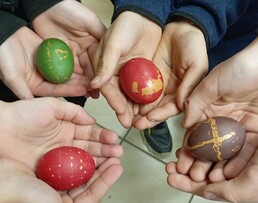 Wielkanocne zwyczaje na Kaszubach rozpoczynają się od Niedzieli Palmowej. Uczniowie uczęszczający na język kaszubski w naszej szkole poznali wiele zwyczajów kaszubskich oraz mogli manualnie wykonać kilka ozdób wielkanocnych. Klasy pierwsze ozdobiły jaja w kaszubskie wzory, nieco starsi wykonali zajączki. Klasa piąta zmierzyła się z dawnym zdobieniem jajek- malowanie woskiem i barwienie. Natomiast klasy ósme zdobiły jaja metodą decoupagu z akcentem kaszubskim oraz upiekły chleb, który symbolizuje dostanie życie i jest najważniejszym symbolem świąt wielkanocnych, ponieważ przedstawia Ciało Chrystusa.