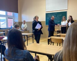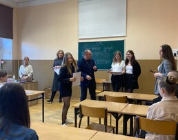 Wyróżnienie i nagrodę otrzymała uczennica naszej szkoły - Alicja Rybka. W oczekiwaniu na wyniki uczestnicy konkursu mogli uczestniczyć w warsztatach prowadzonych przez uczniów liceum - członków Klubu Debat, a także porozmawiać z twórcami szkolnej telewizji Soplica TV.