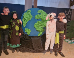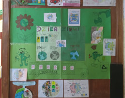 Dnia 21 kwietnia w naszej szkole odchodziliśmy Dzień Ziemi. W ramach Dnia Ziemi uczniowie klas 1-3 wykonali eko-zwierzaki, natomiast uczniowie klas 4-8 plakaty pod hasłem „Świat w Naszych Rękach”. Uczniowie klasy 3 zaprezentowali przedstawienie dotyczące losów Ziemi, po czym wręczyli dla przedstawicieli klas, dyrekcji i pracowników kwiaty, które mają nam przypominać o tym, że należy dbać o naturę.