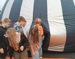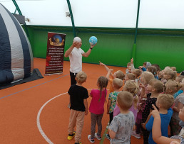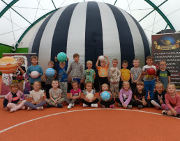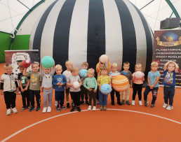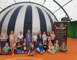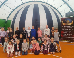 Człowiek od zawsze interesował się kosmosem i lubił patrzeć w niebo, a szczególnie na gwiazdy. Nic więc dziwnego, że dzieci z naszych placówek były pod ogromnym wrażeniem mobilnego planetarium „Orbitek”, które mieliśmy okazję oglądać w naszej szkole 14 września. Przedszkolaki oraz uczniowie uczestniczyły w seansach edukacyjnych o różnych tematykach. Odbywały się one w specjalnej kopule o kształcie kuli ziemskiej. Wirtualna podróż na Księżyc, zwiedzanie poszczególnych planet Układu Słonecznego, zapoznanie ze znakami zodiaku, deszcz meteorytów, to tylko niektóre ciekawostki związane z ruchem sfery niebieskiej, których doświadczyliśmy dzięki niezwykłemu pokazowi. Okazało się, że kosmiczna przestrzeń to jedno z ulubionych zagadnień dzieci. Niektórzy wprost przyznawali, że chcieliby kiedyś polecieć rakietą w kosmos. Nie pozostaje nam nic innego, jak życzyć spełnienia tych cudownych, kosmicznych marzeń.