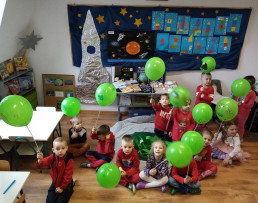 Wspólnymi siłami udało się stworzyć wielką rakietę. Doszło również do nietypowego spotkania - dzieci odwiedził gość - UFOLUDEK ZAK-MAK3.