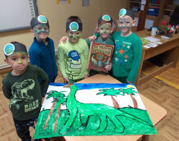 W środę 26 lutego 2020r. w naszym przedszkolu odbył się Dzień Dinozaura. Tego dnia przedszkolną aulę wypełniły Tyranozaury, Stegozaury, Anktylozaury, Pterodaktyle i inne jaszczury z minionych epok. W prehistoryczny świat przeniosły nas opowiadania i wiersze, a z pomocą dzielnych przedszkolaków kąciki w salach zamieniły się w prawdziwe jurajskie parki. Dzieci brały udział w rozmaitych grach, zabawach; kolorowały ulubione dinozaury; wykonały mnóstwo prac plastycznych. Największą radość wzbudziły jednak prace wykopaliskowe w poszukiwaniu dinozaurów i ich jaj. Odnalezienie prawdziwego prehistorycznego jaja wywołało spore poruszenie. Frajdą było wykucie małego dinusia, oczyszczenie go i zaopiekowanie się nim.