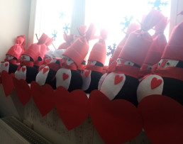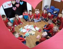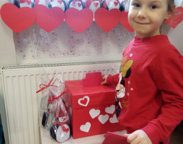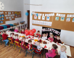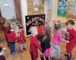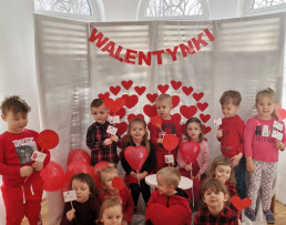 Dzień Świętego Walentego obchodzony jest na całym świecie jako święto miłości. Również w naszym przedszkolu upłynął na wzajemnym okazywaniu sobie życzliwości, dobroci i przyjaźni. Po raz pierwszy pojawiła się u nas poczta walentynkowa. Dzieci wspólnie z rodzicami przygotowały walentynkowe kartki dla wybranego przez siebie kolegi lub koleżanki, następnie wrzucały je do specjalnej skrzynki. Miłym zaskoczeniem była dla nas ogromna ilość przygotowanych „walentynek”. Większość dzieci otrzymała ich po kilka.