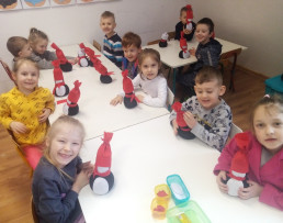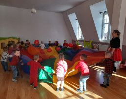 Wspólne zabawy, eksperymenty, tańce z chustą animacyjną, układanki, przeliczanki dostarczyły wielu radosnych wrażeń. Dzień ten zapisał się w pamięci przedszkolaków jako baaaardzo miłe wspomnienie.