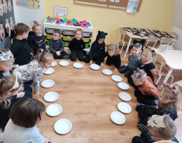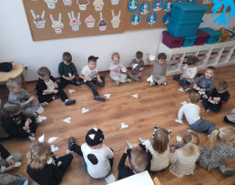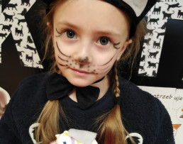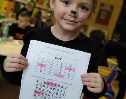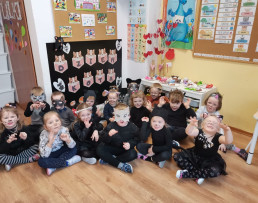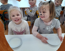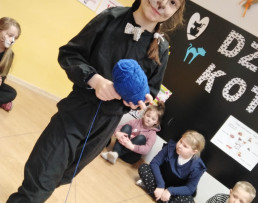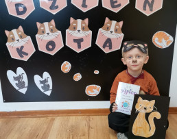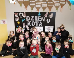 Poznaliśmy różne koty, nie tylko te, które mieszkają w Polsce. Wykonaliśmy prace plastyczne, techniczne. Liczyliśmy koty, porównywaliśmy ich wielkość i kolor. Jednak najwięcej frajdy sprawiły na kocie zabawy ruchowe i taneczne. W dalszej kolejności przyszedł czas na zawody i konkursy, wśród których nie mogło zabraknąć picia mleka z miseczki, polowania na myszy, kociego masażyku oraz zagadek słowno - obrazkowych. W nagrodę za aktywne uczestnictwo panie wręczyły wszystkim dyplomy. Już teraz wiemy, że dzień ten został ustanowiony po to, aby zwrócić uwagę na bezdomne koty i po to, aby im pomagać.
