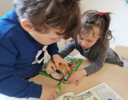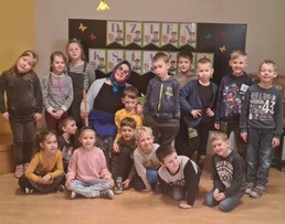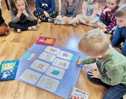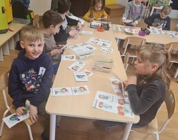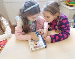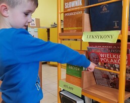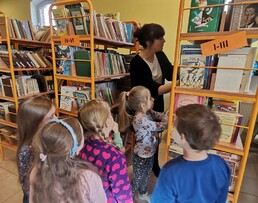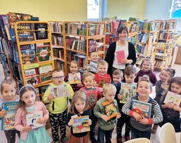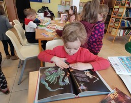 - wycieczka do biblioteki szkolnej, gdzie Pani Klaudia miała przygotowane różne zagadki słowne i obrazkowe, gry i zabawy edukacyjne związane z bohaterami bajek. Na koniec wizyty dzieci dostały w prezencie zakładkę oraz mogły wypożyczyć książeczkę do domu.