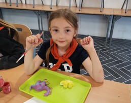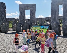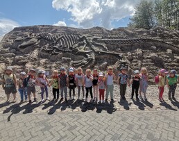 17 czerwca grupa 5 – latków udała się na wycieczkę do Parku Ewolucji w Sławutówku. Naszą wyprawę rozpoczęliśmy od warsztatów, podczas których ozdabialiśmy gipsowe magnesy dinozaurów. Następnie udaliśmy się do prehistorycznego kina, gdzie dinozaur Arnold zapewnił nam trochę zabawy oraz nauki o powstawaniu ziemi i księżyca. Po kinie wybraliśmy się w prawdziwą podróż okrętem podwodnym na dno prehistorycznego oceanu, poznając zwierzęta, które tam żyły. Następnie pojazdami Flinstonów przejechaliśmy w podróż ścieżką dinozaurów, gdzie podziwialiśmy prehistoryczne gady i płazy. A pokonując ścieżkę człowieka pierwotnego, udaliśmy się na przejazd kolejką Sliding Dragon - to była prawdziwa frajda! Po zabawie na placu zabaw i obiedzie, naszą wycieczkę zakończyliśmy przejażdżką Dino kolejką szynową. Wycieczka była pełna emocji i świetnej zabawy!