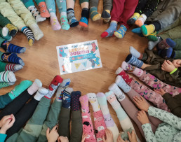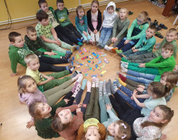 Dnia 21 marca na całym świecie obchodzony jest Światowy Dzień Osób z Zespołem Downa. Dzieci z naszego przedszkola także włączyły się w obchody tego wyjątkowego dnia, zakładając dwie różne, kolorowe skarpetki na znak solidarności z tymi osobami. Zakładając kolorowe, niepasujące skarpetki, zwracamy na siebie uwagę, a tym samym zwracamy uwagę na problemy, z którymi borykają się osoby z tym Zespołem. Pokazujemy, że różni nas od nich tak niewiele, jeden niepasujący, dodatkowy chromosom, tak jak jedna niepasująca skarpetka. Jest to wyjątkowy dzień, który pozwala zwiększyć świadomość społeczną, uczy tolerancji, akceptacji i zrozumienia, bo ,, WSZYSCY JESTEŚMY RÓŻNI, LECZ TAK SAMO WAŻNI”.