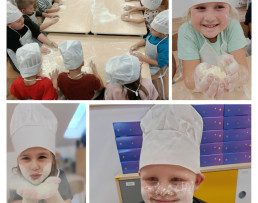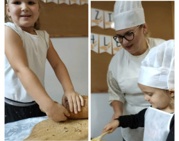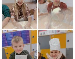 Najwięcej zabawy sprawiło dzieciom mieszanie mąki, wody, soli z naturalnym zakwasem. Potem tylko czekaliśmy na efekt końcowy. Zapach pieczonego chleba był wspaniały, a jeszcze lepiej smakował!