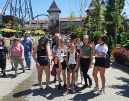 Energylandia. Zator i Energylandię przywitaliśmy w godzinach porannych. Mimo zmęczenia, szybko naładowaliśmy baterie po pysznym śniadaniu. Z energią ruszyliśmy do największego parku rozrywki w Polsce. Uczniowie w pełni korzystali z wszystkich stref tematycznych, m.in. z : Bajkolandii, Strefy Familijnej, Ekstremalnej, Smoczego Ogrodu, Water Parku i Aqualantis. Największe emocje wywołał Hyperion- drugi najwyższy i najszybszy rollercoaster w Europie. Najwięcej radości natomiast sprawiła kolejka Śmiejżelki i Toffifee. Każdy znalazł coś dla siebie. Spaleni słońcem, rozbawieni, naładowani pozytywną energią ruszyliśmy do Białego Dunajca. Tu przywitano nas po góralsku - suto zastawionym stołem. Po tak aktywnym dniu nie trzeba było długo przypominać o ciszy nocnej. Jutro kolejny dzień wrażeń!