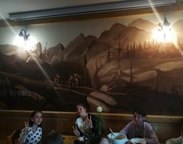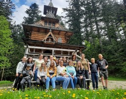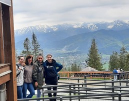 Zakopane. Dzień zaczęliśmy od wjazdu kolejką linową na Gubałówkę. Po krótkim spacerze pośród górskich widoków zjechaliśmy na dół wyciągiem krzesełkowym. Dla wielu było to ekstremalne przeżycie. Następnie udaliśmy się na Krupówki, gdzie można było skosztować góralskich specjałów i kupić pamiątki. Mieliśmy też okazję zobaczyć tradycyjny, góralski ślub. Później zobaczyliśmy Wielką i Małą Krokiew oraz nowopowstałe skocznie treningowe, na których trenują już 7-8 latkowie w ramach lekcji w-fu. Jako że pogoda dopisała realizowaliśmy dalszy program wycieczki: Odwiedziliśmy Kapliczkę w Jaszczurówce zbudowaną bez użycia gwoździ. Następnie spędziliśmy miłe popołudnie w góralskiej izbie regionalnej w Murzasichle. Były gawędy, śpiew i ciekawostki o życiu na Podhalu. Dzień zakończyliśmy w Pieninach, a dokładniej w miejscu, gdzie kręcono "Janosika". Stamtąd wróciliśmy do pensjonatu na pyszną obiadokolację.