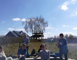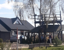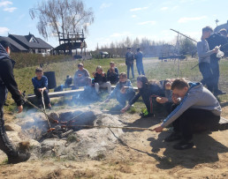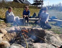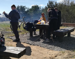 Dzięki uprzejmości ośrodka wypoczynkowego TuDobrze nasi uczniowie mogli upiec sobie kiełbaskę w ogrodzie przed piramidami, no i… zobaczyć piramidy :)