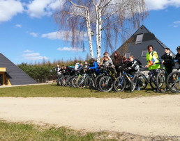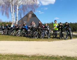Mimo wielu stromych leśnych podjazdów i zjazdów wszyscy uczestnicy wycieczki dzielnie pokonywali kolejne kilometry trasy, której przystanek główny miał miejsce u stóp piramid w Osiekach.