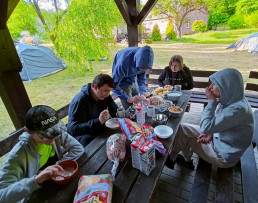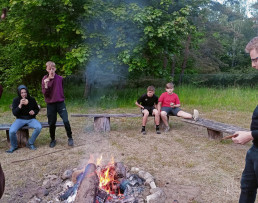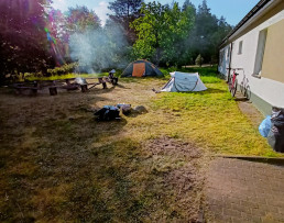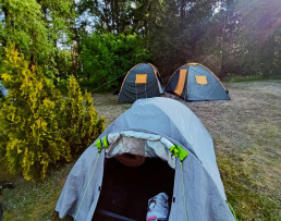 Ostanie dni maja złaknieni przygód uczniowie z klasy 7 i 8 spędzili pod chmurką, a właściwie w namiotach. Swoją bazę noclegową mieli nad jeziorem w Krzyni. Dotarli tam na rowerach w asyście opiekunów. Dni spędzone na polu namiotowym były czasem świetnej integracji, gier terenowych, spacerów po lesie i wycieczek rowerowych. Uczniowie musieli stawić czoła wielu wyzwaniom: począwszy od rozłożenia namiotu, napompowania materacy, na rozpaleniu ogniska i samodzielnym przygotowywaniu posiłków kończąc. Zdecydowanie preferujemy i polecamy taką formę spędzania wolnego czasu.
