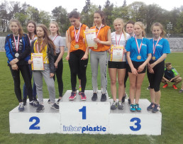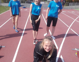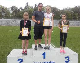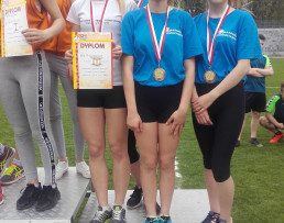 Nasze gimnazjalistki na podium w powiatowej sztafecie 4x100m.