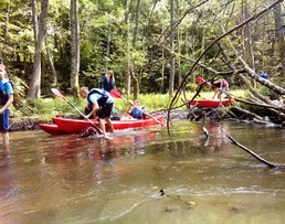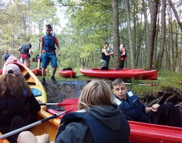 W trakcie spływu wszyscy jego uczestnicy to jedna wielka rodzina, każdy każdemu pomagał, gdy było trzeba przeciągnąć kajak przez przeszkodę lub koledze zabrakło jedzenia. W połowie Naszej wycieczki zatrzymaliśmy się na ognisko, które dzielnie przygotował dla nas p. Karol. Nabrawszy nowych sił ruszyliśmy dalej meandrami rzeki podziwiać piękne krajobrazy.