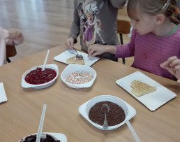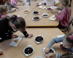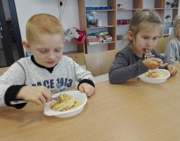 Podsumowaniem wysiłków kulinarnych była wspólna degustacja pyszności stworzonych przez dzieci oraz zachwyt nad smakami i aromatami. Mniam…..