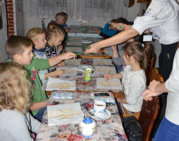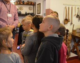 Dzieci dzięki przewodnikowi zapoznały się z wyglądem i przeznaczeniem dawnych przedmiotów związanych z rolnictwem, gospodarstwem domowym oraz wyposażeniem dawnej izby kaszubskiej. Drugą część wycieczki stanowiły warsztaty malowania drewnianych aniołków, przyodzianych w strój kaszubski.