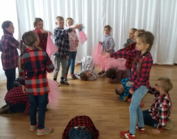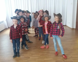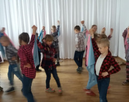 Dnia 29 kwietnia obchodzony jest Międzynarodowy Dzień Tańca. W piątek 27 kwietnia uczniowie z klasy drugiej SP przedstawili dla całej społeczności szkolnej dwa tańce. Pierwszy był to taniec z kolorowymi chustkami a drugi to taniec kowbojski.