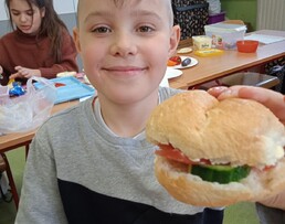 Korzystając z wiosennych nowalijek, najmłodsi uczniowie z naszej szkoły wykonali na lekcji języka kaszubskiego kanapki. Przy okazji utrwalili poznane słownictwo związane z produktami żywnościowymi. Praktyczna nauka przyniosła wiele radości i zaspokoiła głodne brzuchy dzieci…….