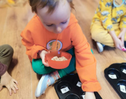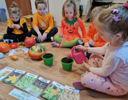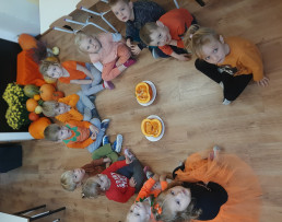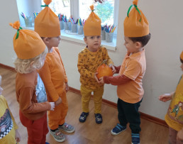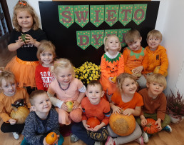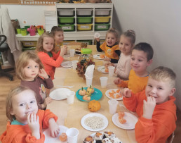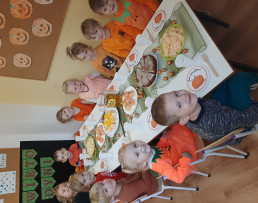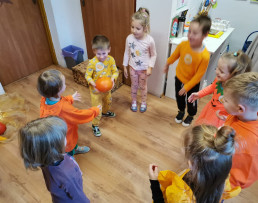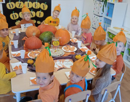 W naszym przedszkolu to święto obchodziliśmy 29 października. Dzieci ubrały się tego dnia na pomarańczowo – można było poczuć się jak na dyniowej farmie. Tego dnia podczas zajęć dzieci poznały wielką różnorodność dyń i wzbogaciły wiedzę na ich temat. W każdej grupie odbyły się dyniowe zabawy: dyniowe kręgle, slalom dyniowy, skoki przez dynię oraz ziarnko do ziarnka. Nie mogło również zabraknąć dań z dynią w roli głównej. Przedszkolaki delektowały się dyniowymi smakołykami, przygotowanymi przez rodziców – pyszne ciasta z dyni oraz sok z dyni.