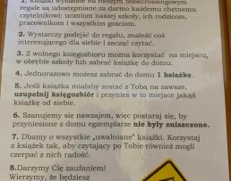 W październiku i listopadzie 2021 roku, w naszej szkole, przeprowadzona została akcja promująca czytelnictwo wśród dzieci i młodzieży. Na holu pojawił się regał z książkami, które „dostały nowe życie”. Uczniowie przez cały październik zbierali książki, które zostały później „uwolnione”. Każdy uczeń mógł zabrać z regału jedną pozycję książkową, którą po przeczytaniu z powrotem odkładał na miejsce, aby ktoś inny także mógł ją przeczytać! Póki co, „BOOKCROSSING” świetnie się sprawdził w naszej placówce, więc kontynuujemy tę akcję w kolejnych miesiącach! Zachęcamy do czytania!