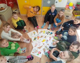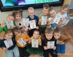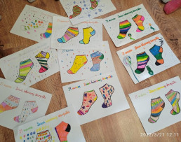 W związku z tym dzieci z naszego przedszkola przystąpiły już kolejny rok do tej akcji i w 21 marca przyszły do przedszkola w dwóch, różnych, kolorowych skarpetkach.